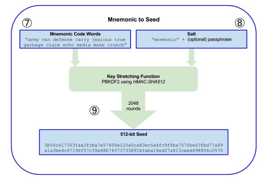 从助记词到Seed过程要计算起来非常耗时,否则容易被暴力攻破
