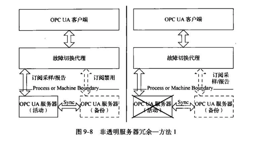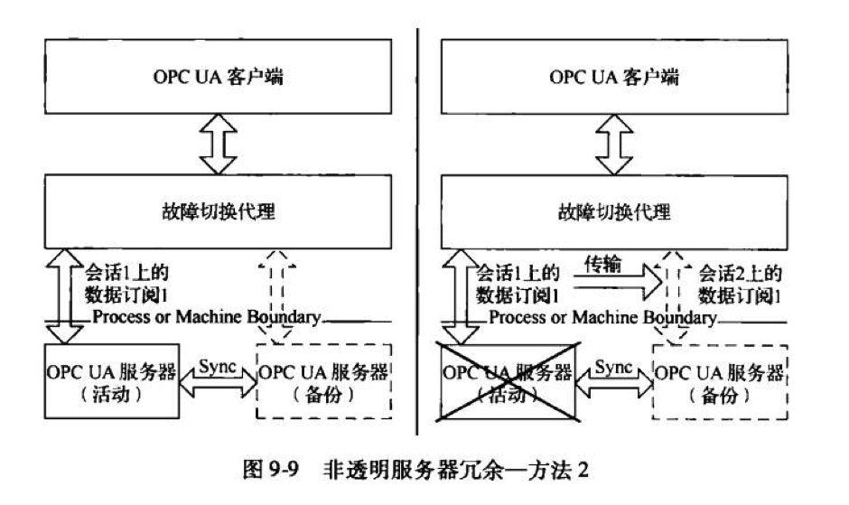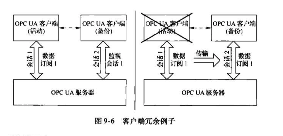 假设有一个备份客户端的活动OPCUA客户端订阅了数据变化。该备份客户端用监视OPCUA中其他数据的同样方式监视服务器地址空间内的活动客户端的会话信息。一旦活动客户端失效且地址空间内会话状态改变,备份客户端就使用Transfersubscriptions服务从活动客户端获得所有运行的订阅。订阅可以比会话存活更久,因为它们的生命周期与会话的生命周期无关。因此,在该故障恢复过程中,服务器必须将要发送的数据缓存到客户端以避免数据丢失。这一机制要求备份客户端清楚监视会话的Sessionld以及传输活动客户端订阅的Subscriptionld。但是OPCUA没有制定一个明确的方法在客户端之间交换这些信息。